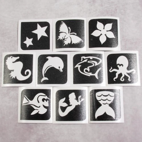 In de glitterttatoosjablonen set zitten 10 glittertattoo sjablonen.
