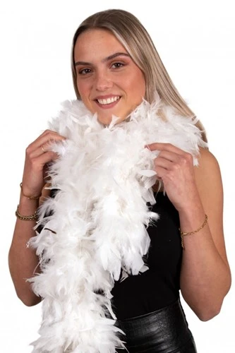 Deze Boa wit is gemaakt van veren en wordt gedragen als een boa.