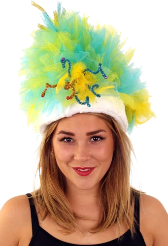 Deze carnavalsbontmuts is een zachte bontmuts die lekker aanvoelt, zowel de muts als de decoratie is heel licht waardoor het fijn dragen is.