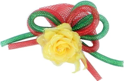 Broche Bloem Rood Geel Groen met speld en knip.Â