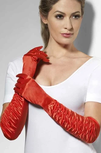 Deze lange rimpel handschoenen hebben de kleur rood. Zeer geschikt voor carnaval, themafeest of een fout feestje.