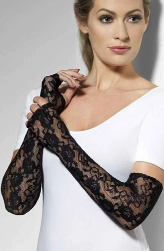 Deze kanten handschoenen zijn lang, zonder vingers en hebben de kleur zwart. Zeer geschikt voor carnaval, themafeest of een fout feestje.