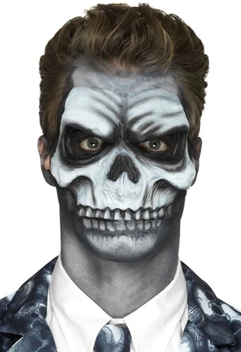 Bepaal eerst waar je de Prothese wilt plaatsen. Houd de prothese tegen de huid en dep met een sponsje met transparant poeder over de randen. Op deze manier krijg je een goed beeld waar je de prothese moet plakken. Vervolgens breng je een dunne laag huidlijm of mastix extra aan op de huid en op de achterkant van de prothese. Gebruik niet te veel en wees extra voorzichtig rond de ogen en mond. Laat de lijm een beetje drogen voordat je de prothese op de juiste plek aanbrengt.