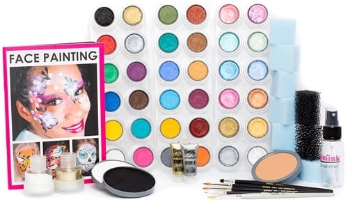 Dit Schmink pakket H bevat alles wat je nodig hebt als beginnend schminker. Met dit schminkpakket heb je een prima basis met 36 kleuren Grimas Water Make-up waarmee je kan schminken. Grimas Water Make-up is een ongeparfumeerde en glutenvrije watermake-up, bedoeld voor gezichts- en lichaamsbeschildering. De schmink kleuren van Grimas zijn onderling mengbaar. De schmink van Grimas mag op de slijmvliezen en rondom de ogen gebruikt worden en voldoet aan de Europese cosmetica wetgeving.