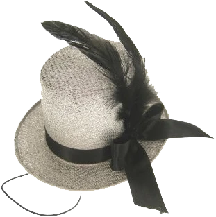 Dit midi hoedje is is +/- 7 cm hoog en heeft een glitter look. Op het hoedje zit een decoratie met strik en veertjes.