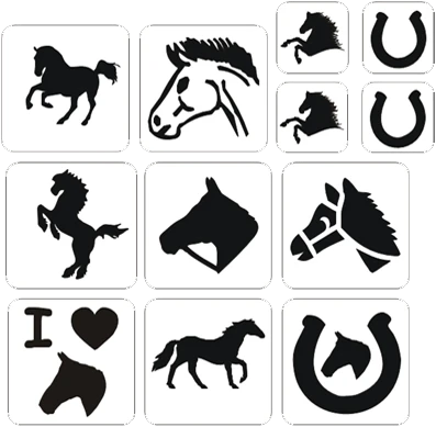 Met deze paarden glittertattoo sjablonen maakt u heel eenvoudig een leuke glittertatoeage van verschillende paarden.