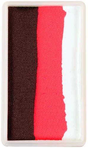Gaan de kleuren in het potje door het gebruik in elkaar overlopen maak deze dan schoon met een vochtige doekje. Na gebruik de splitcake schmink goed laten drogen en pas afsluiten als de schmink volledig droog is.