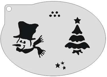 Met dit schminksjabloon schmink je snel en eenvoudig een mooi patroon met Sneeuwpop en Kerstboom.