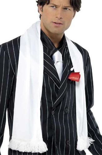 Deze witte sjaal met kwastjes is een mooi en stoer accessoire voor je Gangster outfit. Perfect voor carnaval of een themafeest.Â