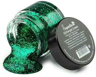 De Superstar Glittergel bevat polyester glitter (3 hex) van cosmetische kwaliteit in een gel basis. De gel is zo ontwikkeld dat je deze ook aan kan brengen op schmink zonder dat het deze oplost. Bovendien droogt de gel snel op. Voor een super glinsterend effect kan je een extra laag losse glitters aanbrengen wanneer de gel nog nat is.