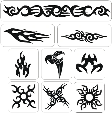 Met deze in de tribal glittertattoo sjablonen maakt u heel eenvoudig een leuke glittertatoeage van een tribal afbeelding.