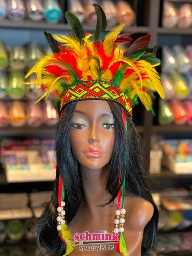 Deze veren hoofdtooi is licht van gewicht en daarom ook gemakkelijk te dragen. De hoofdtooi is opgemaakt met mooie veren, lintjes en goudband. Voor dit geld kan je zelf geen veren hoofdtooi gaan knutselen!