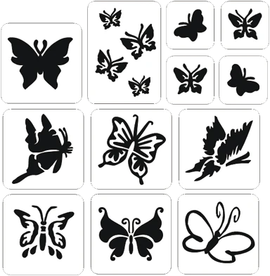 Met deze in de vlinders glittertattoo sjablonen maakt u heel eenvoudig een leuke glittertatoeage van een vlinder.
